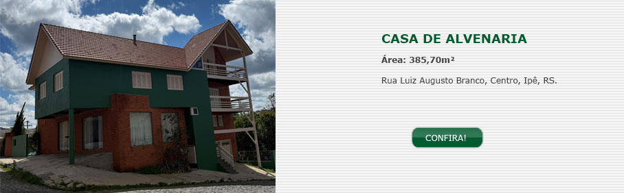 COTA IDEAL DE TERRAS RURAIS, com área aproximada de 6.000,00m², possuindo uma CASA RESIDECIAL DE MATERIAL com área de 133,00m² sendo 3 dormitórios, sala e cozinha conjugadas, área de serviço, despensa e um banheiro, um PAVILHÃO DE MATERIAL INACABADO de 200,00m², com um banheiro, localizada estrada do Vieira, (estrada pavimentada com asfalto, saída para Campestre), 1,9km do Centro de Ipê, RS.